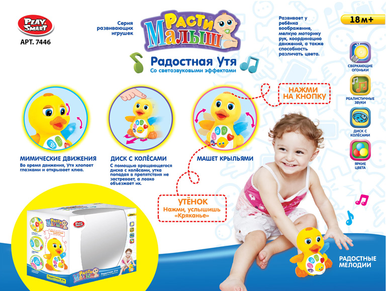 Игрушка развивающая Play Smart Расти Малыш Радостная Утя на батарейках с музыкальными и звуковыми эффектами 7446