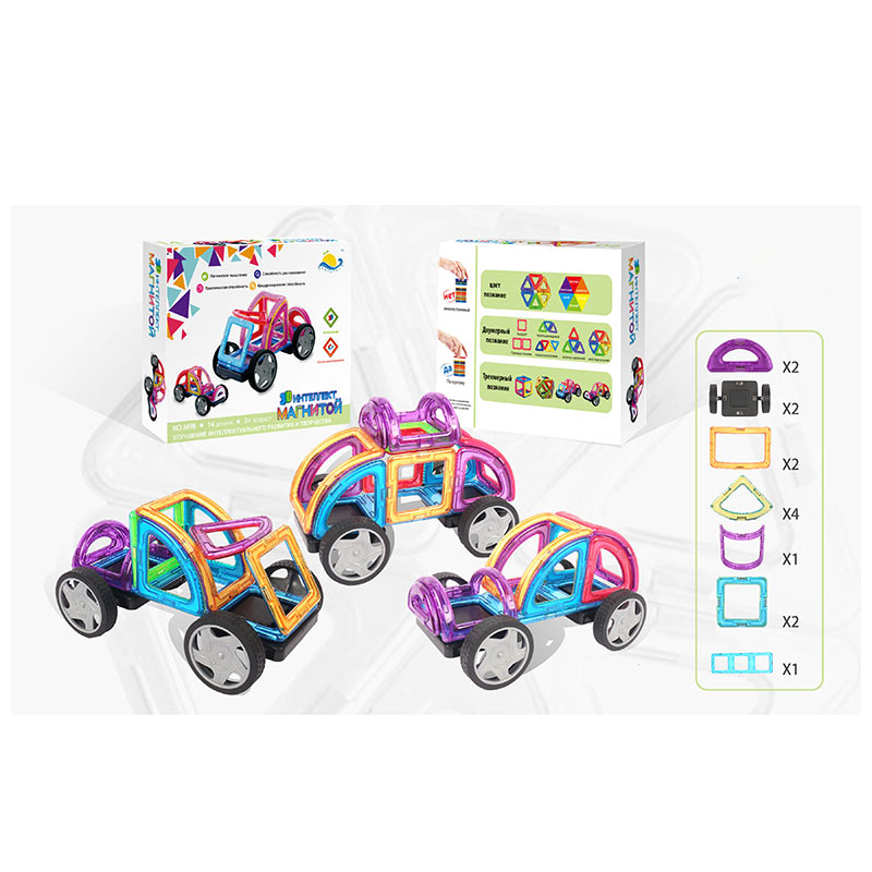 Магнитный конструктор 3D Интеллект Машина 14 деталей с колесной базой 689B