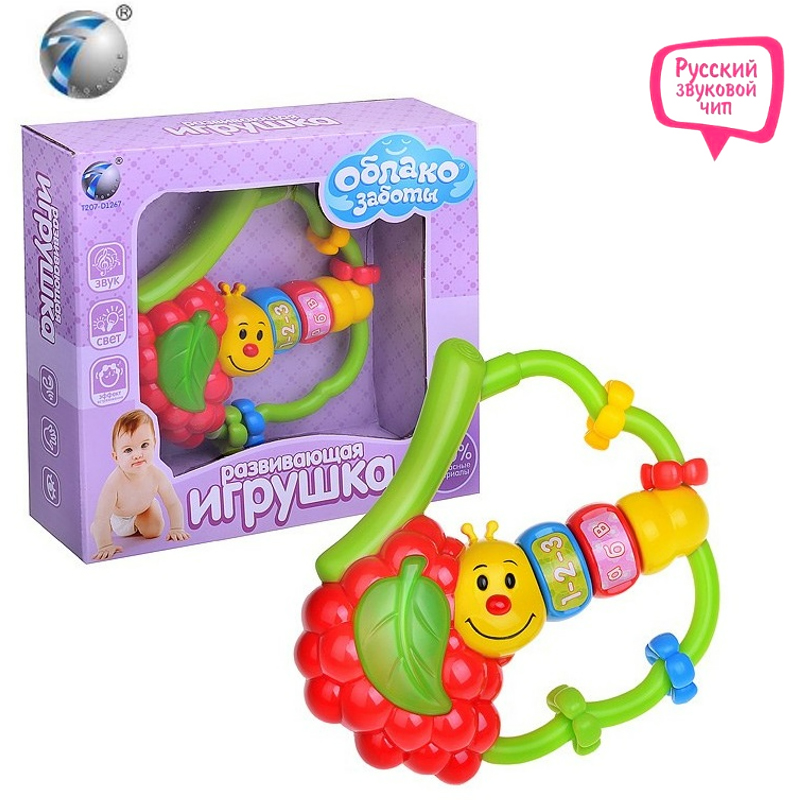 Погремушка серии «Облако заботы» от компании Tongde «Веселая гусеница» 20624E порадует малыша световыми и звуковыми эффектами и подвижными элементами, предназначенными для развития мелкой моторики.